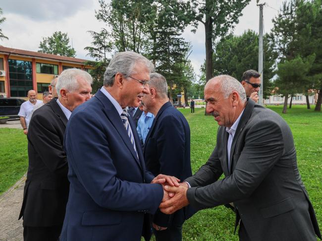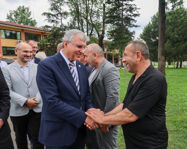Kurban Bayramı dolayısıyla Sakarya Muhtarlar Federasyonu, Sakarya İl Müftülüğü, Şehit ve Gaziler Derneği ile Büyükşehir itfaiyesine bayram ziyaretinde bulunan Başkan Yüce, “Bayramlar birlik ve beraberliğimizi güçlendirdiğimiz, dayanışma ve paylaşma duygusu ile kardeşlik bağlarımızı kuvvetlendirdiğimiz mübarek günlerdir. Rabbim nice bayramlara kavuşmayı nasip eylesin” dedi.Sakarya Büyükşehir Belediye Başkanı Ekrem Yüce, Kurban Bayramı dolayısıyla düzenlenen bayramlaşma programlarına katıldı. İlk olarak Ormanpark’ta Vali Çetin Oktay Kaldırım, milletvekilleri, kamu kurum ve kuruluşu temsilcileri, ilçe belediye başkanları, il ilçe müdürleri, STK temsilcileri ve vatandaşlarla bir araya gelerek bayramlaşan Yüce, daha sonra Büyükşehir itfaiyesinde görevi başında olan itfaiye erlerinin bayramını tebrik ederek kolaylıklar diledi.Muhtarlar Federasyonunda bayramlaşmaBaşkan Yüce, bayram ziyaretlerini Sakarya Muhtarlar Federasyonu ile sürdürdü. Muhtarlar Federasyonu Başkanı Erdal Erdem ve muhtarların karşıladığı Başkan Ekrem Yüce, “Sevginin kardeşliğin, birlik ve beraberliğin habercisi olan Kurban Bayramınızı kutluyorum. Muhtarlarımız bizim uç emirlerimizdir. Görev süremiz boyunca muhtarlarımızla yakın temas halinde çalıştık ve çalışmaya devam edeceğiz” dedi.Yüce, bayram ziyaretleri kapsamında Sakarya İl Müftülüğü’nü de ziyaret etti. İl Müftüsü Mehmet Aşık ve müftülük çalışanlarının bayramını tebrik eden Yüce, hayırlı bayramlar diledi. Başkan Yüce, Diyanet İşleri Başkanlığı ve Türkiye Diyanet Vakfı işbirliğinde sürdürülen vekaletle kurban organizasyonuna destek olmak için, kurban vekaletini İl Müftüsü Mehmet Aşık’a verdi.Şehit yakınları ve gazilerimizin her zaman yanındayızBüyükşehir Belediye Başkanı Ekrem Yüce, Kurban Bayramı ziyaretleri kapsamında Şehit ve Gaziler Derneği’nde şehit yakınları ve gazilerle bayramlaştı. Türkiye Harp Malulü Gaziler Şehit Dul ve Yetimleri Derneği Sakarya Şube Başkanı Mustafa Çolak, Türkiye Muharip Gaziler Derneği Sakarya Şube Başkanı Erol Demir, dernek üyeleri, şehit yakınları ile buluşan Yüce, her zaman yanlarında olduğunu vurguladı. Yüce, Sakarya’da birlik ve beraberlik içerisinde nice bayramlara ulaşmayı temenni ederek, “Bu toprakları bizlere emanet eden aziz şehitlerimizi rahmetle ve minnetle anıyor, gazilerimize hayırlı uzun ömürler temenni ediyorum” dedi.
