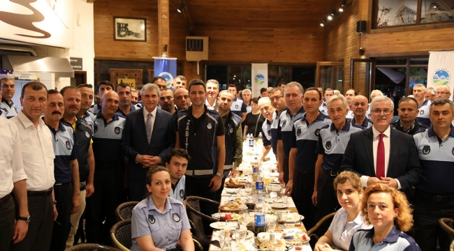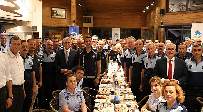 “Örnek bir teşkilata sahibiz”Zabıta teşkilatı ile bir araya gelen Başkan Ekrem Yüce, “Örnek bir teşkilat olarak şehrimiz huzuru ve güvenliği için çalışacağınıza, adaletten, şefkatten ve merhametten ayrılmayacağınıza inanıyorum. Bu şehri hep birlikte güzelleştirecek, şehrimize ve hemşerilerimize en iyi hizmeti sunacağız” dedi.Sakarya Büyükşehir Belediye Başkanı Ekrem Yüce, Zabıta Teşkilatı ile iftar programında buluştu. Donatım Park’ta gerçekleştirilen buluşmada Genel Sekreter Yardımcısı Ziya Cevherli, Zabıta Dairesi Başkanı Davut Yüce ve zabıta personelleri yer aldı. Başkan Yüce, tüm katılımcıların Ramazan’ını tebrik ederek, hayırlı bayramlar temennilerini iletti. Sakarya’ya hizmet için çalıştıklarını ifade eden Başkan Ekrem Yüce, yeni stratejiler belirleyerek fark yaratacak bir zabıta teşkilatı misyonu oluşturacaklarını söyledi.Örnek teşkilatBaşkan Ekrem Yüce, “Zabıta ekiplerimiz bizim vatandaşlarımıza bakan yüzümüzdür. Örnek bir teşkilat olarak şehrimiz huzuru ve güvenliği için çalışacağınıza, adaletten, şefkatten ve merhametten ayrılmayacağınıza inanıyorum. Sizler hemşerilerimize yardımcı olacak, güler yüzünüzle bu şehre hizmet sunacaksınız. Haksız rekabete yol açan seyyarlara yönelik denetimlerimiz devam edecek. Yasal çerçeveler doğrultusunda kurallara uymayanlara karşı sorumluluklarınızı yerine getireceksiniz. Bu vesileyle tüm hemşehrilerimize de çağrımızı yineleyelim ve bu şehri birlikte güzelleştirelim. Rabbim çalışmalarınızı kolaylaştırsın. İnşallah örnek bir zabıta teşkilatıyla şehrimize ve hemşerilerimize en güzel şekilde hizmet edeceğiz” dedi.